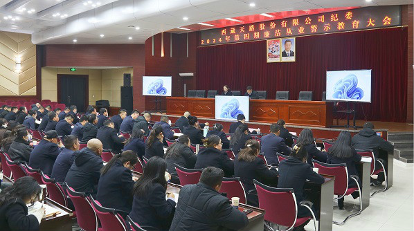 ????? 為深入貫徹落實(shí)黨的二十屆三中全會(huì)精神,進(jìn)一步推進(jìn)黨風(fēng)廉政建設(shè),12月9日,西藏天路股份有限公司紀(jì)委召開2024年第四期廉潔從業(yè)警示教育大會(huì),公司黨委書記、董事長(zhǎng)頓珠朗加參加會(huì)議并講話,黨委專職副書記、董事、工會(huì)主席西虹主持會(huì)議。