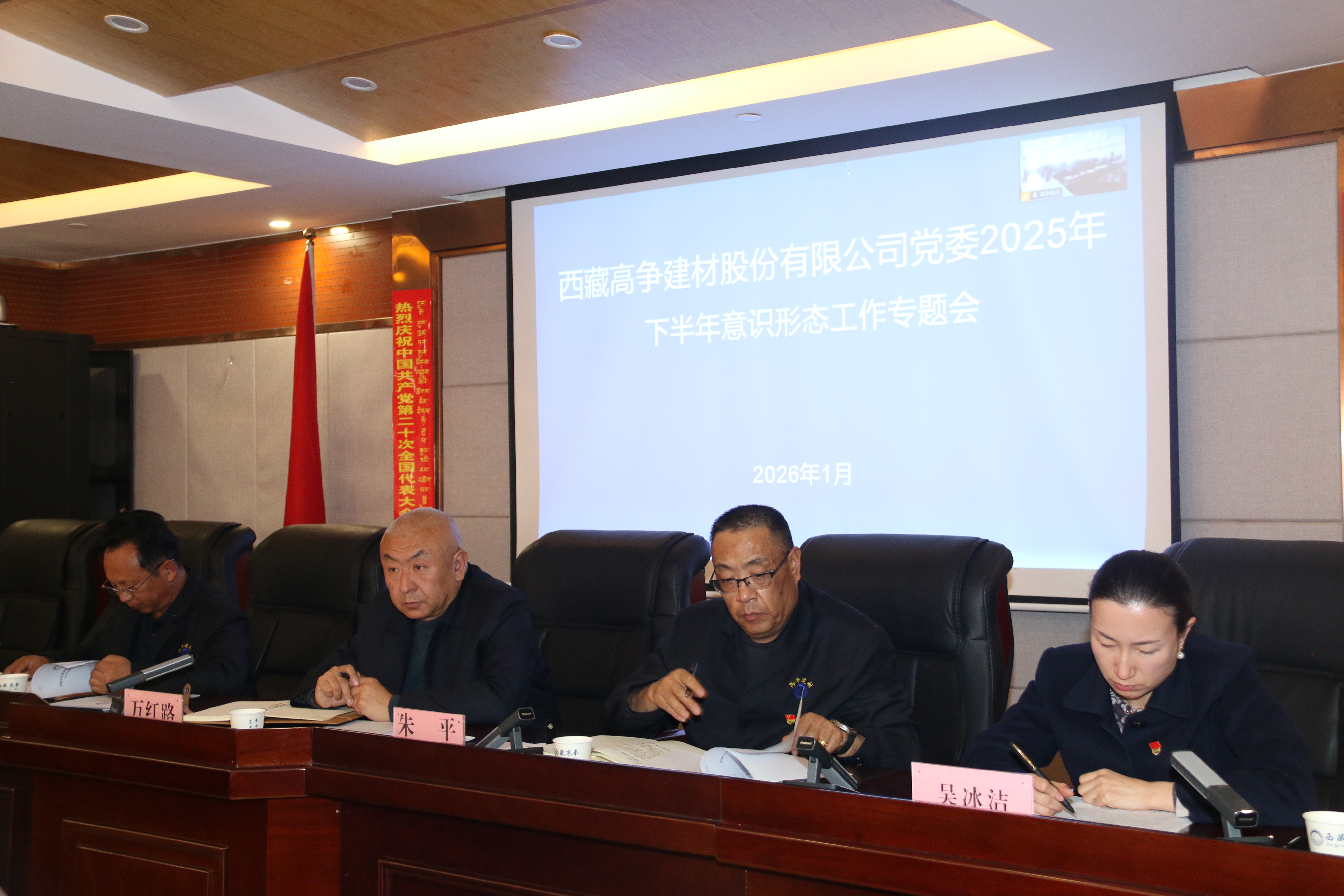 2026年1月7日,西藏高爭建材股份有限公司黨委召開2025年下半年意識形態(tài)工作專題會。高爭股份黨委書記、董事長萬紅路主持會議,公司在家領(lǐng)導(dǎo)、各車間、各部門、子公司負責(zé)人及機關(guān)全體黨員參加會議。