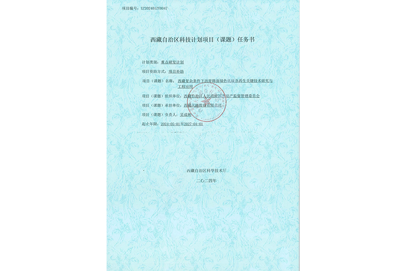 西藏自治區(qū)科技計劃項目(課題)任務(wù)書